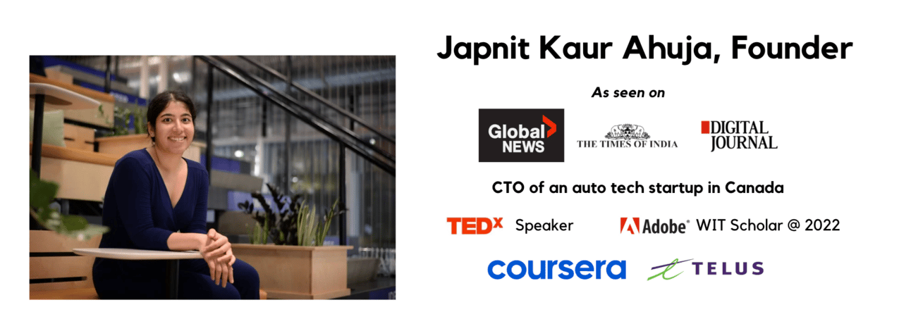 I am Japnit, the founder of Go Girl and the CTO of an auto tech startup in Canada which recently raised money. My work in technology has been featured in Times of India, Global News, Digital Journal and won awards from Adobe, Cadence and Zonta. I started Go Girl when I was just 15 and since then we have grown to 2k underprivileged girls taught, 100 volunteers and 70k+ followers on instagram. I have also given 2 TEDx talks, worked at Coursera and published an ML research paper.